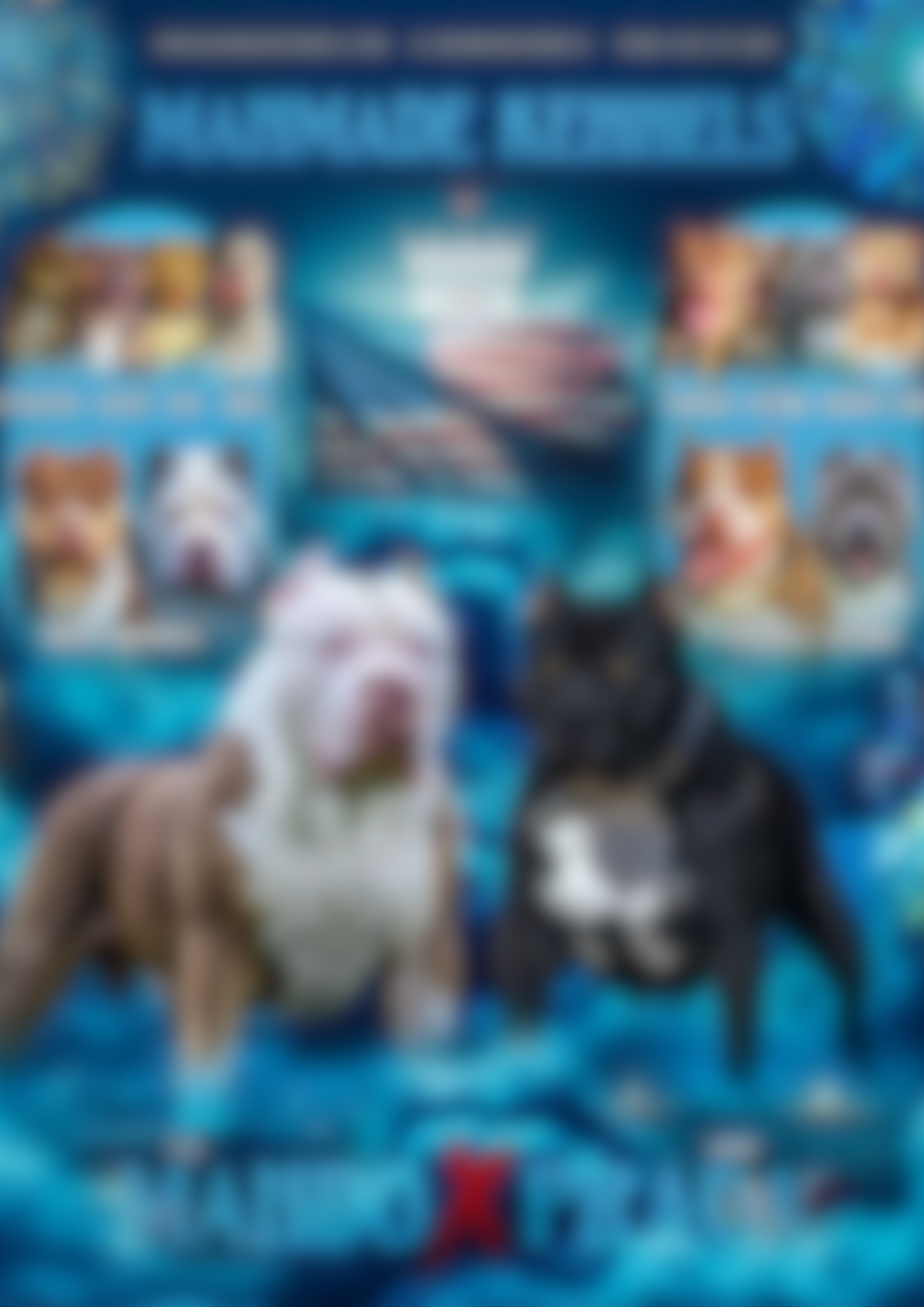 ManMade Kennels stands at the forefront of American Bully excellence, home to some of the most prestigious champion bloodlines in the breed. Our exceptional collection includes Game, our distinguished XXL Merle American Bully, whose heroic journey from the UK has added to his legendary status. Our program also features the renowned Channel, whose outstanding red nose lineage and XL Bully characteristics have established new standards in the breeding community.
